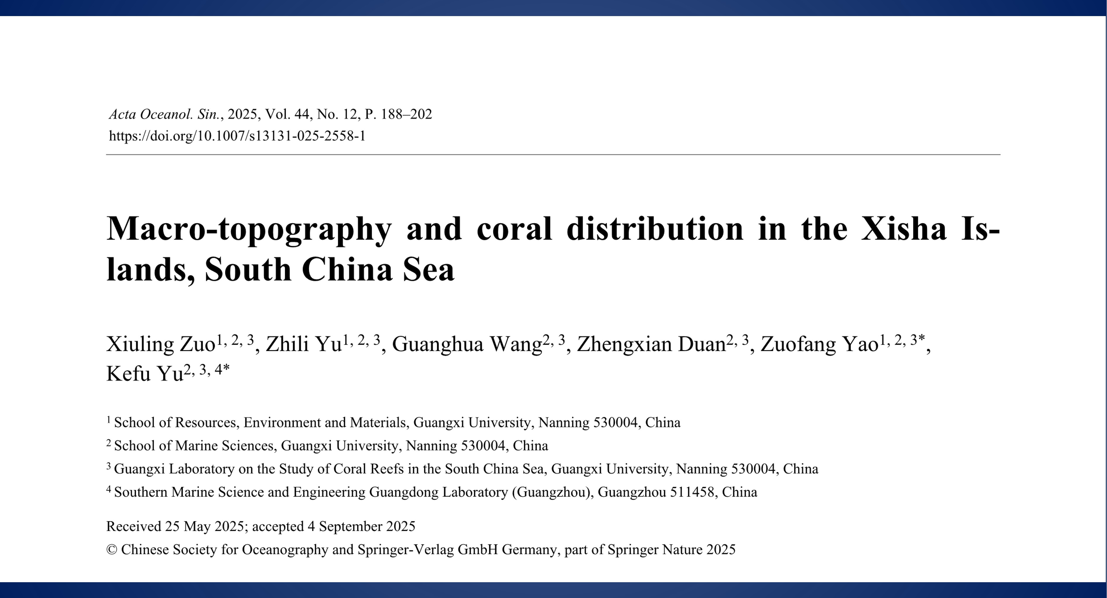 我院珊瑚礁研究成果荣获2023年度广西自...