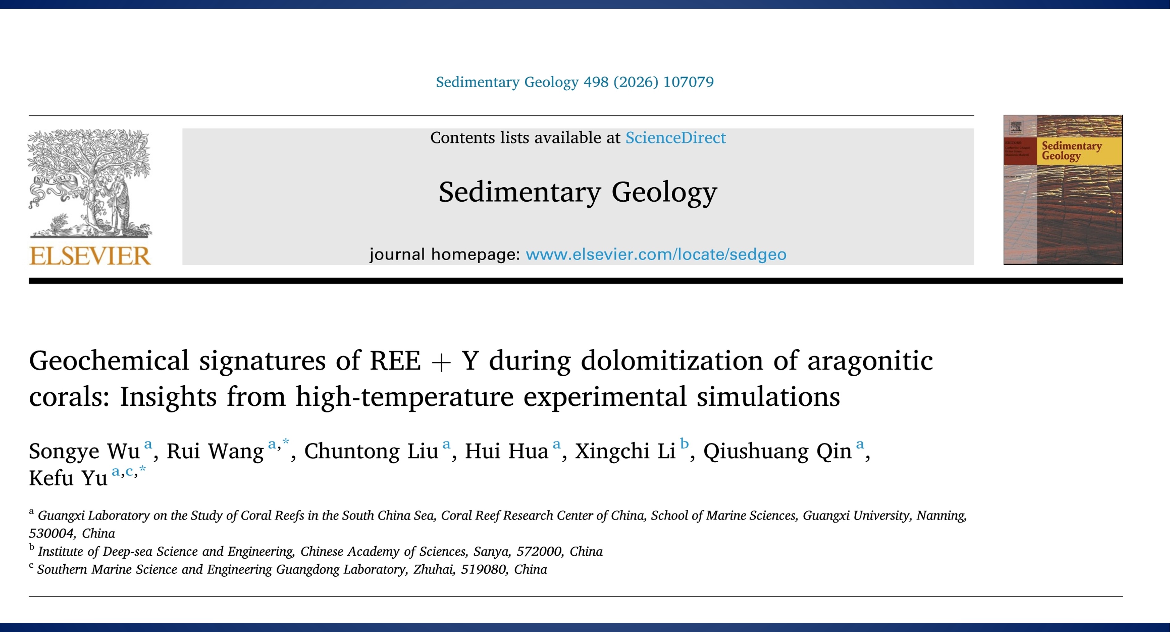Sedimentary Geology:珊瑚白云石化过程...