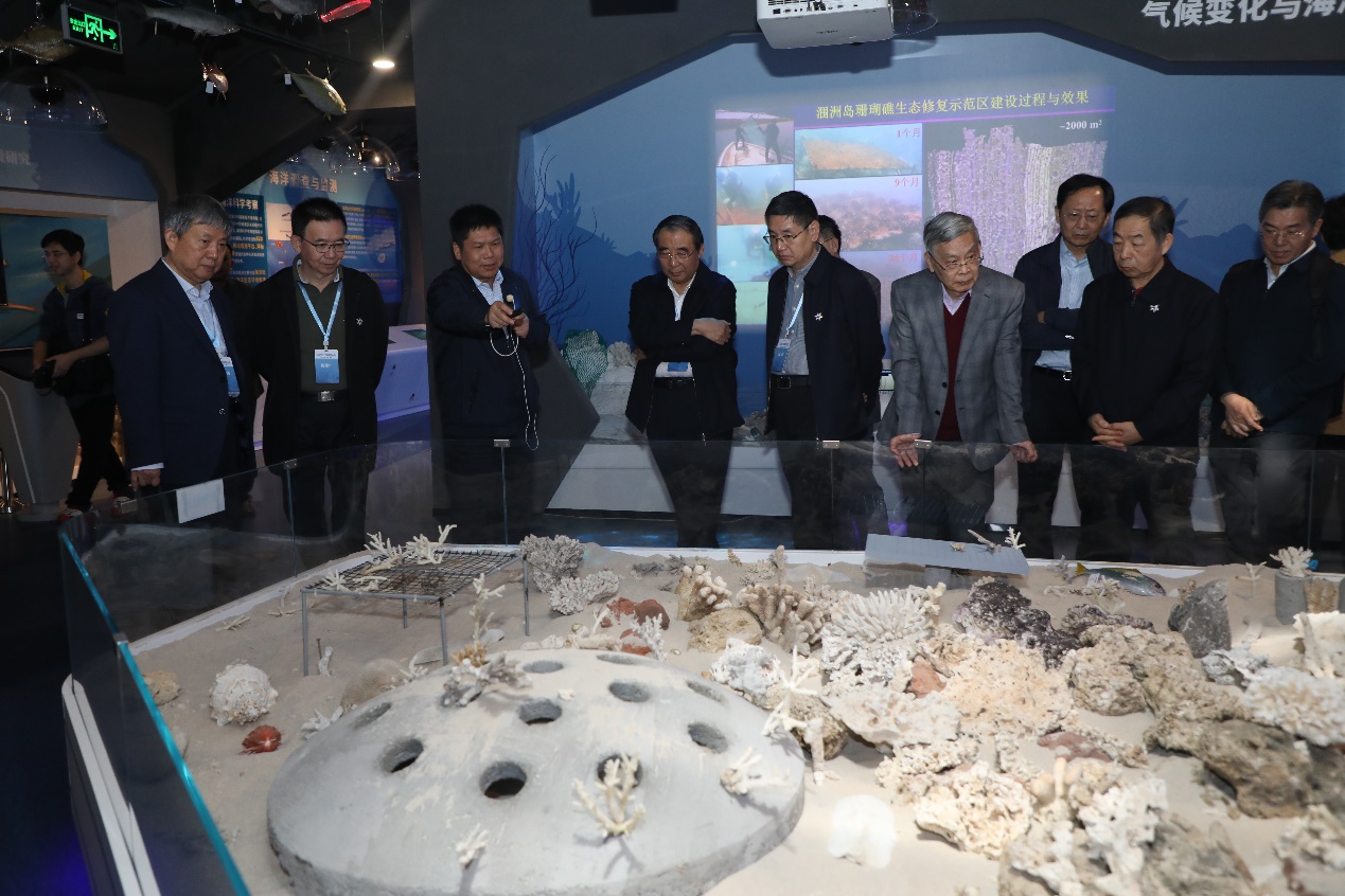 在考察过程中,院士专家团先后参观了广西大学海洋科教馆及海洋学院岛礁生态修复实验室。海洋学院院长余克服向院士们系统汇报了学院在珊瑚礁研究领域的特色优势与重要进展,重点围绕南海珊瑚礁生态现状、退化过程及成因、珊瑚礁对环境变化的记录及其对历史气候的响应规律等方面展开介绍,并阐述了学院相关科研工作在服务南海岛礁建设与生态环境保护等方面的关键贡献。