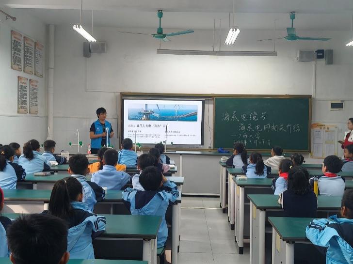 同步展开的科普讲堂中,队员们围绕《守护美丽海洋》《海下电缆与海底电网》两大主题,深入浅出地讲解珊瑚礁“海底热带雨林”与红树林“海岸卫士”的生态价值,结合海洋污染实例,深化“保护海洋就是保护人类自己”的共识。通过“海底电力高速公路”这一生动比喻,同学们了解到海底电缆的结构、铺设技术以及我国在海洋输电领域的创新成就,切身感受科技赋能海洋发展的磅礴力量。