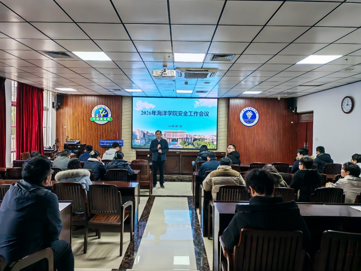 为全面筑牢校园安全防线,压实各级岗位责任,1月22日下午,海洋学院召开安全工作会议,专题部署寒假期间学院安全稳定工作。学院党委书记秦华东、副书记黄学勇、副院长徐向荣、刘旗扬出席会议。学院安全工作联系人、班主任、实验中心全体教师、各实验室负责人及安全员等四十余人参加。