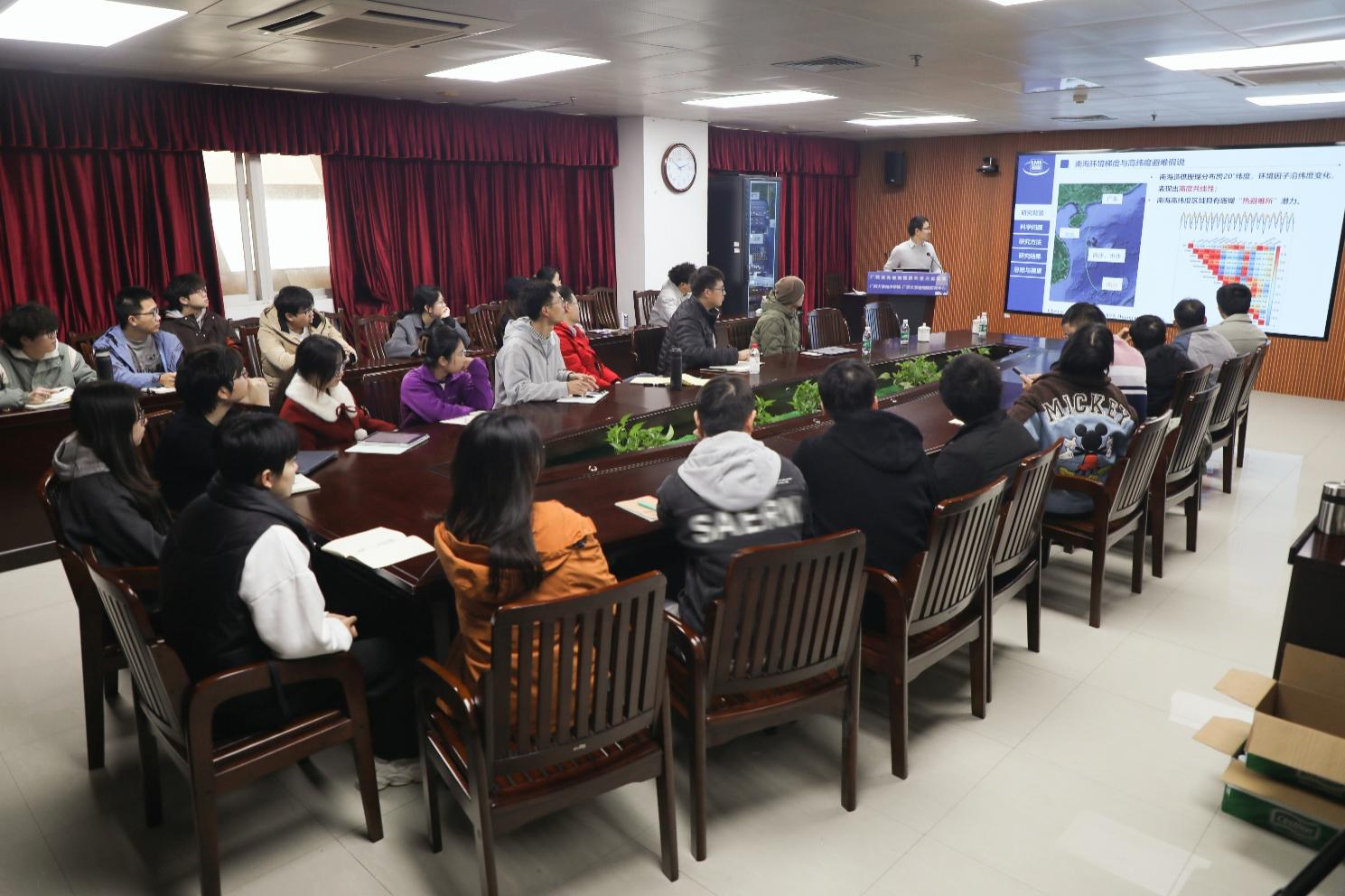 1月27日上午,中国科学院南海海洋研究所江雷副研究员应邀到访我院,在综合楼1104会议室作题为《南海澄黄滨珊瑚应对未来气候变化的遗传适应和生态脆弱性景观》的专题学术报告。报告由学院院长助理俞小鹏主持,全院师生代表到场聆听交流。